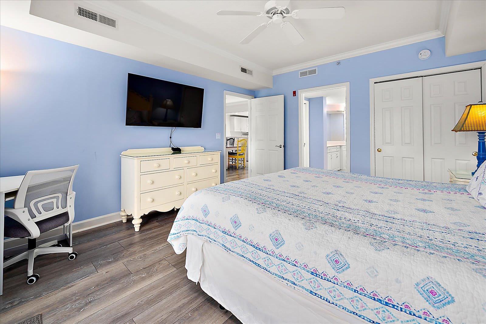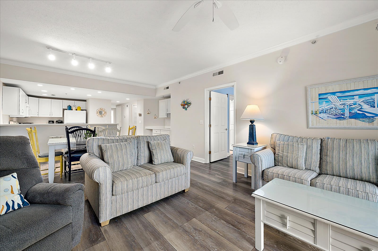 Large oceanside condo in midtown Ocean City with a rooftop pool and a short walk to the beach. This condo offers three bedrooms, two full-bathrooms and an open living area. The living area features a large living room with a sleep-sofa, dining area, wet bar and a fully-equipped kitchen with a convenient breakfast counter. There is a private balcony off of the living area that provides nice outdoor living space. The first bedroom features a king-sized bed, television and an ensuite full-bathroom with dual vanities, soaking tub and a separate shower. The second bedroom features a set of bunk-beds with a trundle pull-out and a television. The third bedroom features a queen-sized bed and a television. The second full-bathroom is centrally located and easily accessible from throughout the condo. This condo has been well maintained and is in good condition. Building amenities include onsite parking for two cars, rooftop pool, outside shower, secure lobby, multiple elevators and a short walk to the beach. Good restaurants, nightlife, shopping, amusements, water sports and more are all within walking distance. Come make some memories at the beach with Coastal Life Vacations. Linen and towel package included with reservation. Management fee includes Damage Waiver for $1000 in accidental damage coverage. This condo is located on the elevated first floor. License #88628