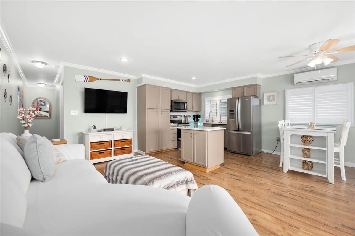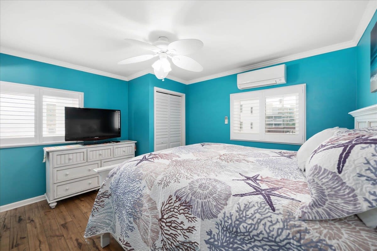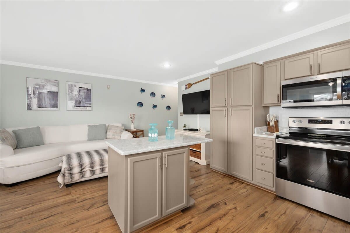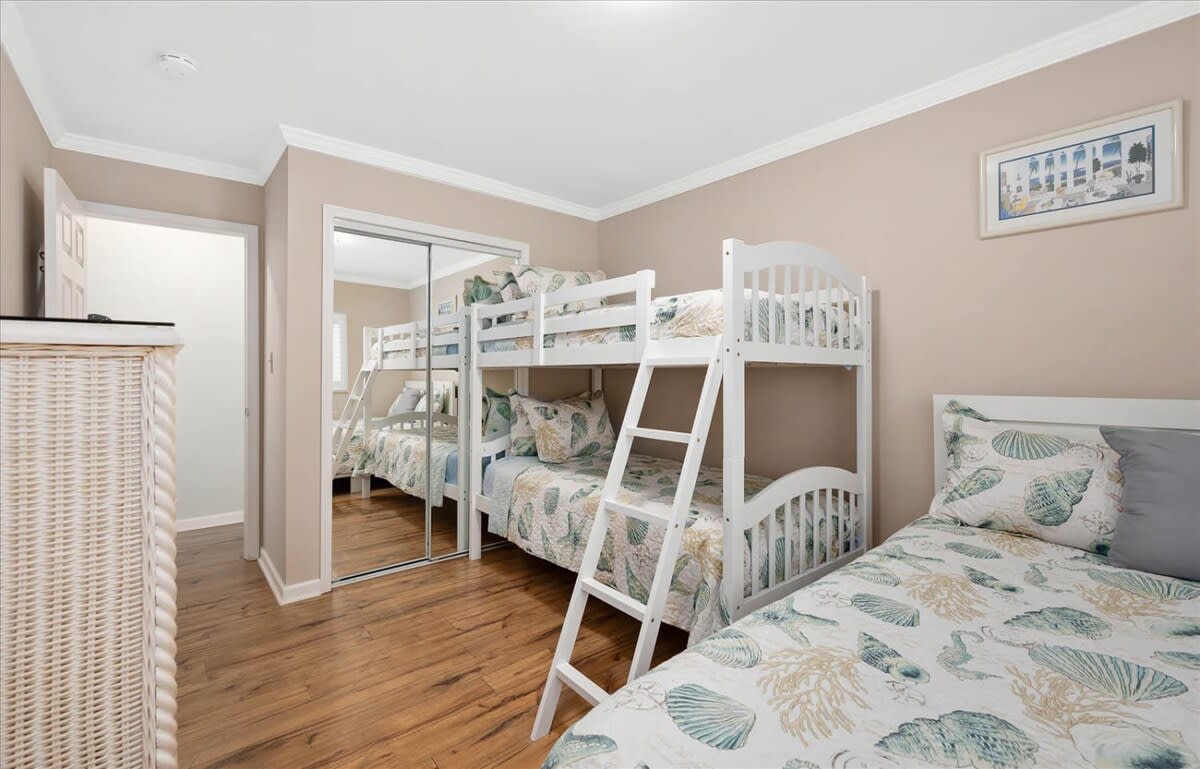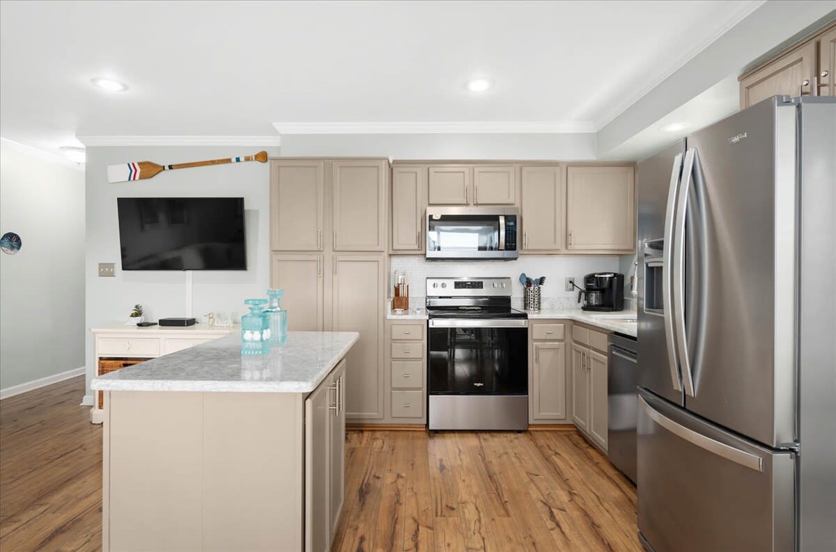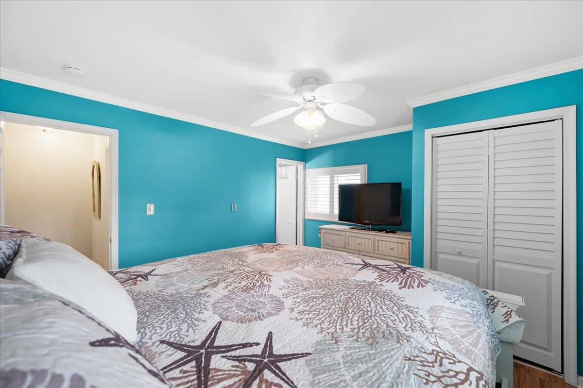 Nicely renovated two bedroom oceanside condo in laid-back North Ocean City. This condo offers two bedrooms, one full-bathroom, one half-bathroom and an open living area. The living area features a nicely decorated living room, fully-equipped kitchen and a dining area. The condo’s end-unit location lets in a lot of nice, natural light for an open feel. There is a balcony off of the living area that is a nice place to relax and unwind after a long day at the beach. The first bedroom features a king-sized bed, television and an ensuite half-bathroom. The second bedroom features a set of bunk-beds, Queen bed and a television. The full-bathroom is centrally located and easily accessible from throughout the condo. The beach, Northside Park, restaurants, amusements, shopping and more are all within a short walk. Come make some memories at the beach with Coastal Life Vacations. Linen and towel package included with reservation. Management fee includes Damage Waiver for $1000 in accidental damage coverage. License #87233 This condo is located on the second floor.