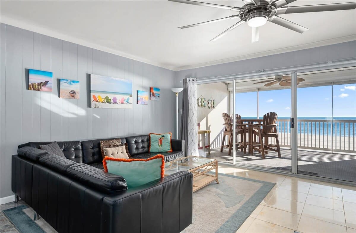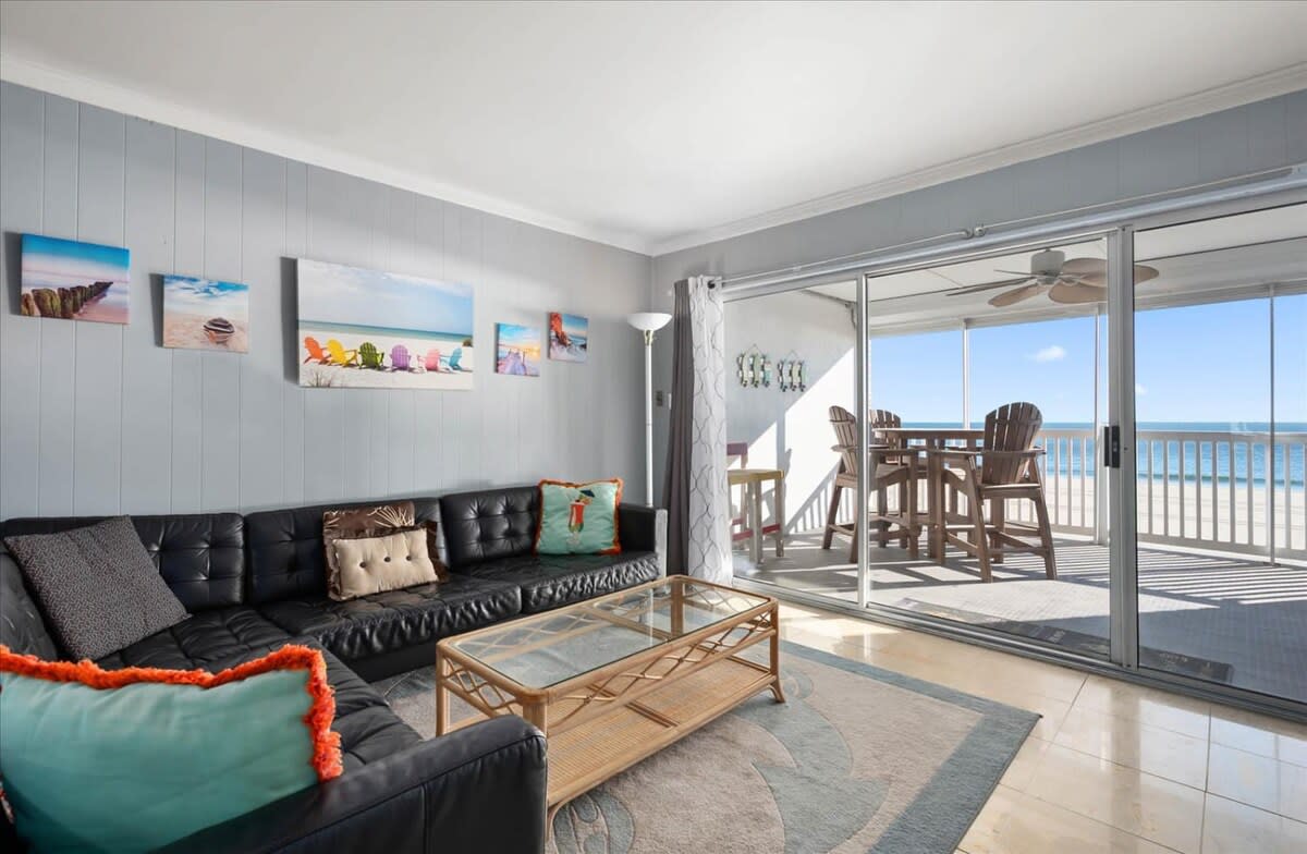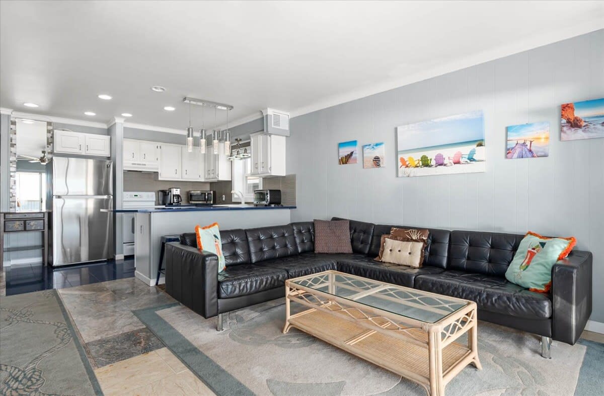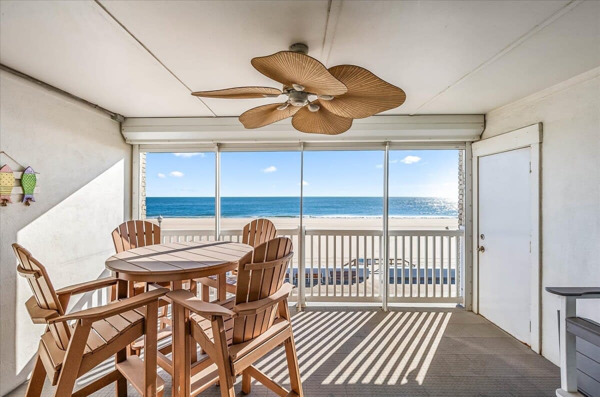 Direct oceanfront condo situated on Ocean City’s famous boardwalk. This condo offers three bedrooms, two full-bathrooms and an open living area. The living area features the living room, dining area and a fully-equipped kitchen. There is a large, covered, private balcony off of the living area that is a great place to relax and enjoy the beautiful ocean views. The first bedroom features a queen bed, television and an ensuite full-bathroom. The second bedroom features a double bed. The third bedroom features a set of bunk-beds and a twin trundle bed with a second twin bed. The second full-bathroom is centrally located and easily accessible from throughout the condo. The building has a prime location on the north end of the boardwalk away from all of the hustle and bustle, yet is only a short walk away from restaurants, shopping, amusements and much more. Come make some memories at the beach with Coastal Life Vacations. Linen and towel package included with reservation. Management fee includes Damage Waiver for $1000 in accidental damage coverage. License #66149